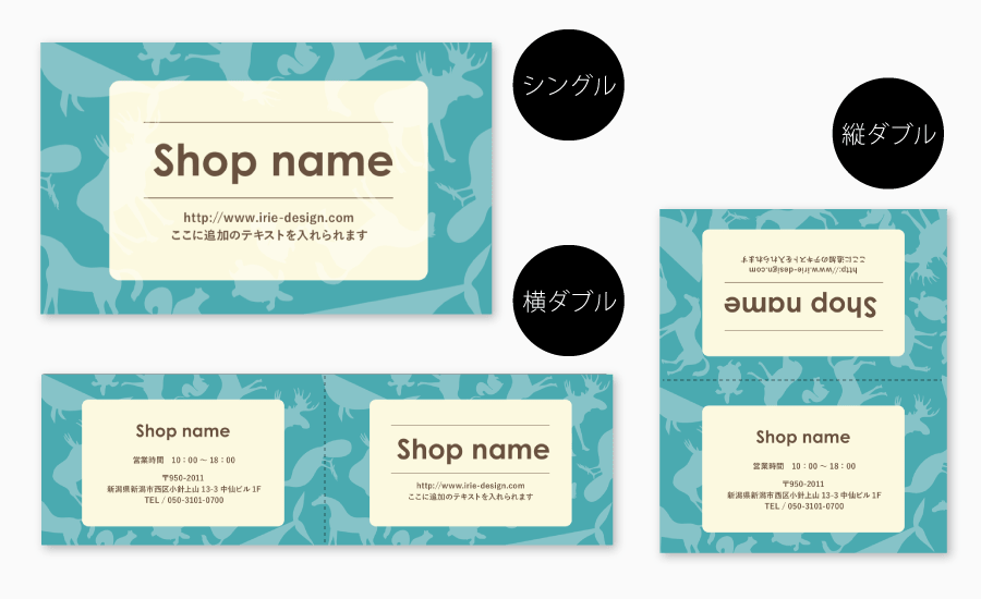 店舗名や住所など全ての記載は自由に変更可能、店舗名などの表示を「おもてなしカード」など全く違う物への変更も可能です。